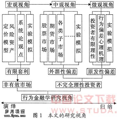 对于已有理论的检视为发现新的研究视角提供了可能,通过上面的讨论可知,现在行为金融学理论研究大都关注宏观的市场非有效性和微观的投资者心理偏差机理的研究,而从中观层面对于金融市场各个子市场的横向研究还不多见,可以说还是空白。再说,对于股票市场的行为金融学研究是否可以适用于整个金融市场,是否仅凭对股票市场的研究就可以建立起统一的行为金融学理论?这个问题值得深思。