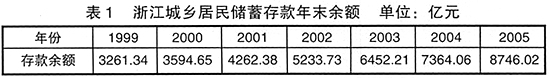 一方面中小企业的直接融资渠道不通畅(股票融资和债券融资都有严格的规定),另一方面正规的金融机构又无法为中小企业提供所需的资金。因此,当浙江广大的中小企业面临融资困境时,不得不在体制外寻求资金循环,求助于民间金融,而浙江充裕的民间资本(从浙江省城乡居民储蓄存款年末余额来看,见表1)为这种资金循环提供了强有力的保证。