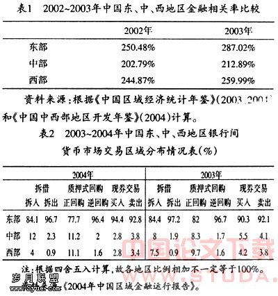 随着改革开放的深入和社会主义市场体制的不断完善,中国的经济发展迅速,人们生活水平得到显著提高,然而,区域间经济发展差距逐步拉大。1999年东、中、西部地区人均GDP依次为10 693.4元、5380.8元、4 283.3元,西部与东部间的相对差为59.9%。截至2003年,东、中、西部地区人均GDP依次为20109.73元、8207元、6656.42元,西部与东部间的相对差为66.9%,可见东、西部经济差距在不断扩大。虽然东、西部差距的扩大与各自的区位条件、基础、文化背景和市场观念等方面的差异有关,但统一的金融政策无疑对差距的扩大起到推波助澜的作用,因为统一的金融政策在东部和西部产生的效果不同,对经济的支持力度也就不同。