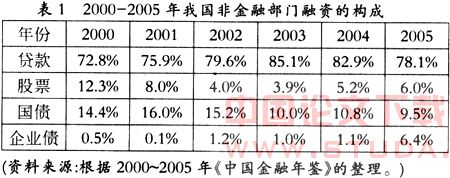国外金融脱媒的大规模兴起,是在20世纪70年代由于金融自由化和金融创新引起的。而我国“金融脱媒”一词的出现大约是在10年以前,但是成为金融理论界研究的热点则是最近一两年。金融脱媒是一种金融现象,是“脱离了”银行这个传统的“金融媒介”的资金融通和金融媒介的形式,是资金脱离银行信用的中介或媒介所进行的直接融资现象。目前,我国的金融体系仍然是以银行融资为主导,银行贷款占到国民经济金融融资总量的70%~85%,而非银行融资不到30%(见表1)。