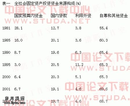 非市场的组织形式常常随着市场的缺失而出现(Arrow,1963)。在缺乏正式金融体系支 持的情况下,中国非国有经济若要实现高速经济增长,就必须借助于非正式金融安排。 非正式金融安排通常是指在正式金融体系之外发生的,不受监管机关监管的金融交易。 实际上,多年来我国务类型经济部门投资的主要部分都来自于内部积累和非正式金融安 排(表一)。