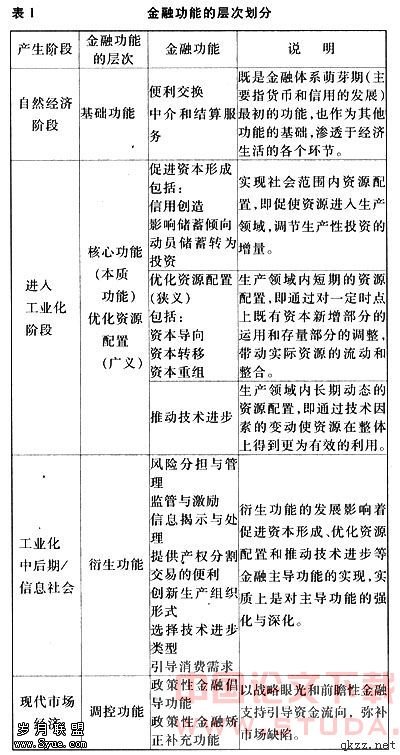 资料来源:根据上文述及的理献中有关提法以及金融功能的历史演变归纳整理得出。