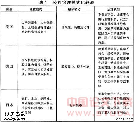 当前发达国家有代表性的公司治理模式主要有三种,即美国、德国和日本的公司治理模式,其主要区别见表1。虽然三国公司治理模式不同,但是都有效地发挥了监督和制衡作用,形成完善的决策、执行和监督机制。