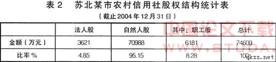 股权结构 所有者虚位,治理主体不明确。从表2可以看出,信用社法人股的比例很小,和日本相似都属“友好”持股者,因而很难在公司治理中扮演积极角色。人股中除职工股外,主要是存款化股金,利益主体多元化的状况导致监督和约束主体不明确。