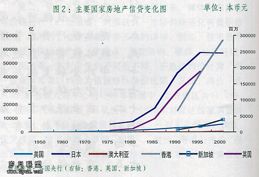 伴随着各国住房产业发展和住房问题的解决,各国房地产信贷规模迅速扩大,年均增长速度都在 10% 以上,部分国家和地区甚至达到 20% 以上,而且增长时期较长,一般都在 20 年以上。美国住宅信贷 50 年增长 100 倍,年均增长 9.86% ;日本房地产信贷 25 年内增长 10 倍,年均增长 10.3% ;澳大利亚住宅信贷 20 年增长 18 倍,年均增长 16.4% ;英国个人住房信贷 25 年内增长 47 倍,年均增长 22.5% ;香港住宅贷款 10 年内增长 4.3 倍,年均增长 18% ,新加坡房地产信贷 15 年内增长 6.7 倍,年均增长 23.6% 。
