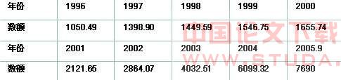 表1 中国自1996年以来的外汇储备额单位:亿美元