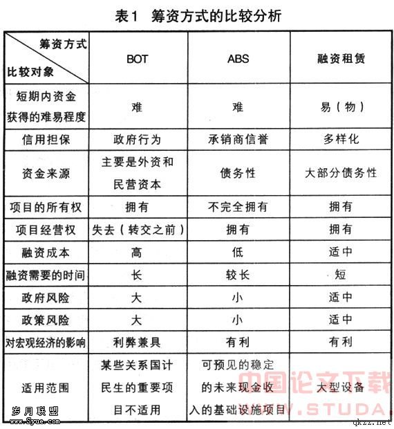 关键词 :BOT ABS 融资租赁 基础设施项目