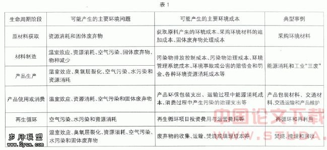 然后分析在整个周期阶段所产生的环境成本。现将ABC与LCC结合起来了解产品在整个生命周期过程中可能产生的环境成本,如表1: