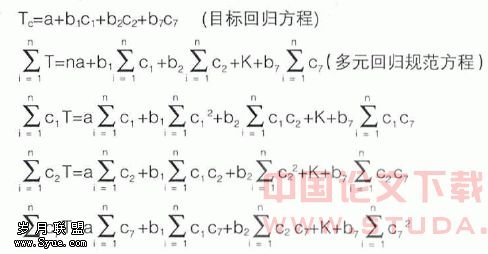 其中a为截距,bi 偏回归系数简称回归系数,这里指环境成本回归系数,它表示当ci每改变一个单位时Tc的平均变化量即自变量ci对因变量Tc的影响程度。n为观测次数,n要大于因变量的个数m(m=7)。