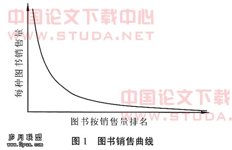 根据以上图书销售模式,如果将图书的销售量作为纵坐标,图书的销售排名作为横坐标, 我们就会得到图1所示这个左边重而短,右边长而低的销售曲线。