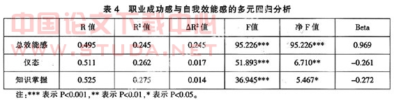 (四)职业成功感与自我效能感的多元回归分析