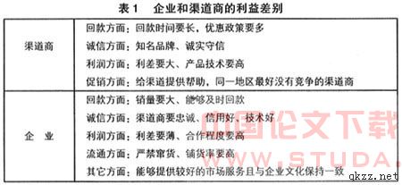 在渠道各成员中,由于彼此扮演的角色的不同其追求也不一致,企业往往从自身出发,对市场及渠道商进行严格控制与管理,渠道商则以利润最大化为目的,以实力为基础与企业就利益关系进行谈判。企业和渠道商的利益差别如表1所示。