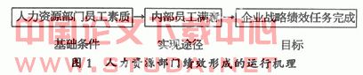 人力资源部门的主要绩效应从人力资源部门员工的素质和内部员工满意度两方面来考核。人力资源部门员工的素质是人力资源部门胜任人力资源工作的基本条件,内部员工的满意是人力资源部门绩效实现的途径,内部员工满意最终推动企业战略绩效任务的完成。