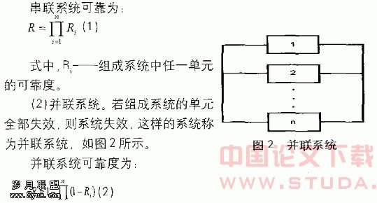 1.串联系统 。若组成系统的所有单元中任一个单元失效均可导致系统失效,这样的系统称为串联系统。串联系统如图1所示,在串联系统中,可靠性最差的单元对系统的可靠性影响最大。