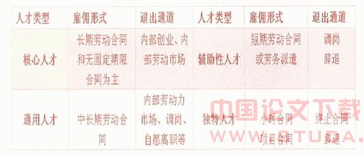 2.建立人力资源分层管理体系。斯奈尔教授根据价值和稀缺性这两个基本维度将企业人力资源划分为核心人才、独特人才、通用人才和辅助性人才等四类。对企业中不同类型的人力资源采取与之相对应的管理方式是构建人力资源退出机制的基础,这四类人力资源对企业的作用各不相同。在遵守《劳动合同法》的前提下,企业可以根据他们的不同特点签定与之相适应的劳动合同,建立科学合理的人力资源管理制度。