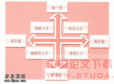 上述的通道各有优缺点,并不是可以适用于任何员工的,根据斯奈尔教授对人才的分类笔者对这四类人力资源进行了分析,见下图:
