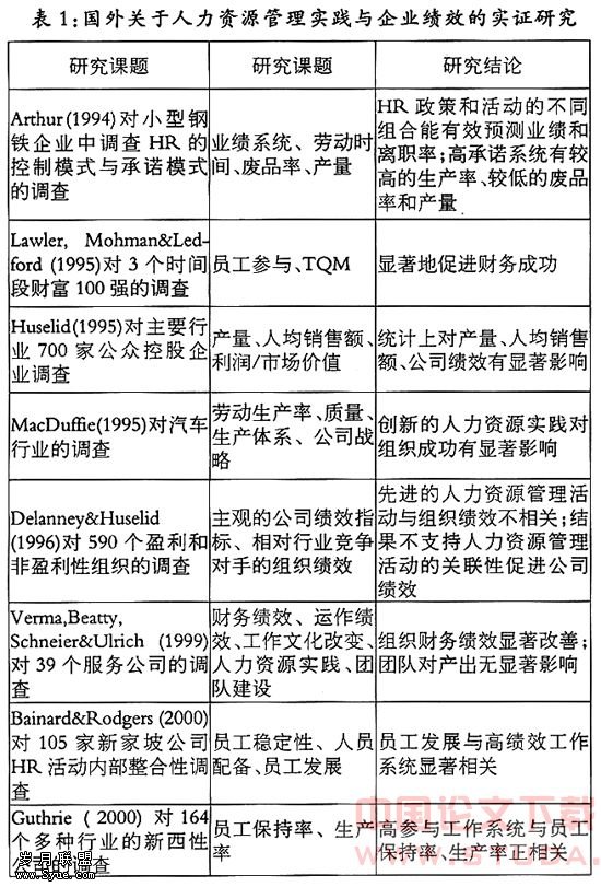 人力资源管理实践与企业绩效研究