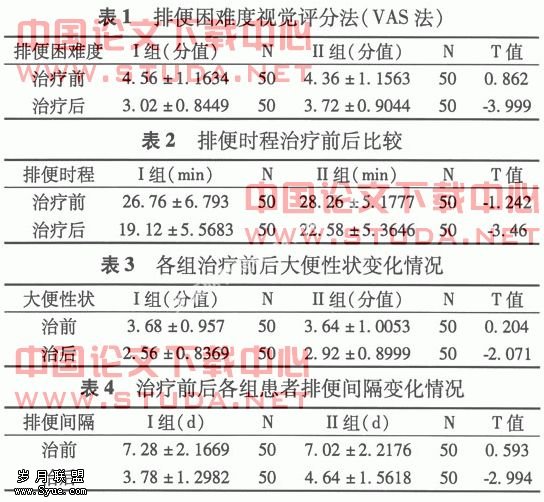 1.5.4 排便时间 嘱患者记录治疗前后每次排便所用时间(单位为min)。?
