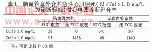 【关键词】 急性脑血管病;急性心肌梗死;心电图;肌钙蛋白