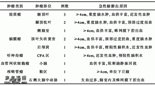 表1 不同种类脑肿瘤出现急性脑膨出原因