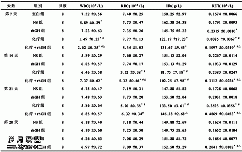 重组人生长激素对化疗大鼠外周血象的影响