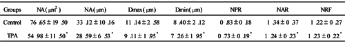 Table 2 Measurements of nuclei morphometry after TPA treatments (x±s)