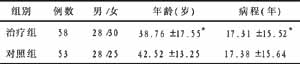 表1 两组病例一般情况对比 (x±s)