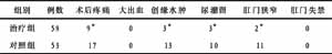 2.2 疗效及并发症 本组均一次手术治愈,两组间疗效及伤口愈合时间差异无显著性(P>0.05)。术后无大出血、肛门失禁等严重并发症,但治疗组术后伤口疼痛、创缘水肿、残留皮赘、肛门狭窄发生例数少,差异均有显著性(P<0.05)。见表2,表3。