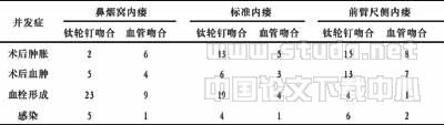 3.3.1 手术侧肢肿胀 这是手术常见的并发症,由于静脉离断后相应的侧支循环尚未建立而使静脉回流障碍所致。术后嘱患者抬高术侧肢体,一般5~7天内肿胀自行消退。本组资料显示鼻烟窝内瘘者,远端肢体肿胀较轻(P<0.05)。
