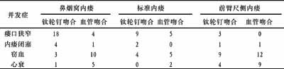 3.2 手术方法的选择 自1985年高伟等[2]率先采用钛轮钉建立内瘘以来,广泛用于临床工作中,但发现此法易形成血管扭曲、成角、狭窄及远期的血管血栓性闭塞,本组发生率11%(P<0.05)。而不断提高的显微外科技术是血管吻合成功的保证。手术在放大镜下建瘘,可进行精确的吻合,且体内无异物残留,从我们统计情况来看其远期并发症亦较少发生。