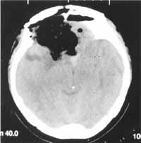 图2 经额锁孔手术完全切除肿瘤后7天CT,肿瘤完全消失