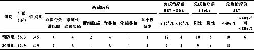 表1 拉米夫定预防组和对照组免疫治疗前一般资料统计
