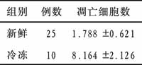 表1 新鲜角膜及冷冻保存后凋亡细胞情况 (x±s)