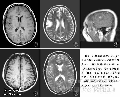2.3 MRI表现 根据脑囊虫的数目、大小、部位及病理演变的不同时期,MRI具有如下特征性表现。