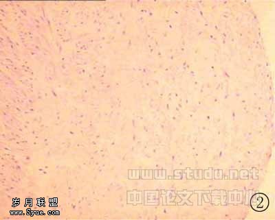 图2 闭合器置入后3个月,其支撑部的血管壁内膜明显增生,未见炎性反应细胞