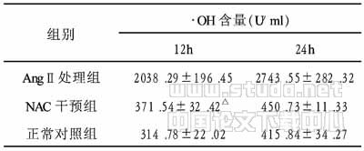 表4 NAC对AngⅡ诱导ECV304细胞·OH含量的抑制作用 (x±s)