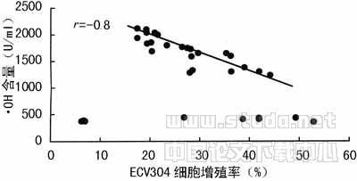 图1 ECV304细胞·OH含量与细胞增殖率的相关性