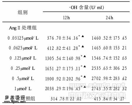 表3 AngⅡ对ECV304细胞·OH含量的影响 (x±s)