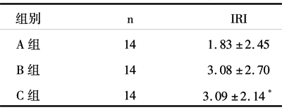 1.4 测定方法 FBG采用葡萄糖氧化酶法测定,FINS采用液相平衡竞争放射分析法(RIA)测定。胰岛素抵抗指数(IRI)用稳态模式评估法(HOMA)中的HOMA-IR公式,即HOMA-IR=(FBG×FINS)/22.5。