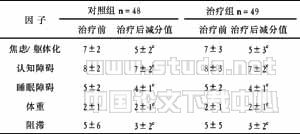 表3 治疗前后HAMD各因子分比较 (分,x±s)