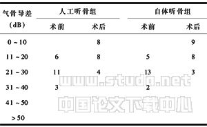 2.4 远期效果 人工听骨组临床随访检查3年来,除患者听力有不同程度提高以外,未见人工听骨被排除或被吸收。远期效果还在进一步的观察随访中。