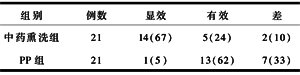 1.5 结果 两组患者伤口愈合情况比较见表1。中药熏洗组和PP组比较,经统计学处理,P<0.01,差异具有非常显著性。