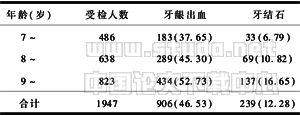表1 不同年龄组儿童乳牙患龋情况年龄  2.1.2 性别分布情况 不同性别乳牙患龋情况,经统计学分析,男女间患龋率差异无显著性(P>0.05),见表2。 2.2 恒牙患龋情况 2.2.1 各年龄组小学生恒牙患龋情况 恒牙的患龋率随着年龄的增长而升高,经统计学分析,差异有显著性(P<0.005),恒牙龋总体充填率为18.51%,无年龄组差异(P>0.05),无失牙情况发生,见表3。 2.2.2 不同性别恒牙患龋情况 经统计学分析,男女患龋率差异无显著性(P>0.05),见表4。 表2 不同性别乳牙患龋情况比较  表3 不同年龄组恒牙患龋情况年龄  表4 不同性别第一恒磨牙患龋情况  2.3 牙周疾病情况 2.3.1 不同年龄组牙周疾病患病情况 不同年龄组调查的牙龈出血和牙结石两项牙周病的平均患病率分别为46.35%和12.28%,患病率随年龄增加而增加,差异均有显著性(P<0.005),见表5。 表5 不同年龄组牙周疾病患病情况 例(%) 2.3.2 不同性别小学生牙周疾病患病情况 经统计学分析,男女牙龈出血及牙结石检出率差异无显著性(P>0.05),见表6。 表6 不同性别儿童牙周疾病患病情况 例(%)  3 讨论 3.1 小学生牙病状况 本次调查结果表明,小学生龋病特别是乳牙龋的患病情况比较严重,7~10岁小学生乳牙龋病总患龋率为65.95%,但治疗率却很低,乳牙龋的总体充填率仅为11.10%,大部分小学生龋病没有得到相应的治疗。恒牙患龋率虽然极大地低于乳牙65.95%,仅为11.35%,但患病率随年龄的增加明显上升,恒牙患龋后的治疗充填率也仅为18.51%。7~10岁小学生牙龈出血、牙结石的患病率也随年龄的增加明显上升,平均患病率分别为46.53%和12.28%。 而更令人担忧的是,尽管无锡市早已在中小学中进行了口腔健康教育和定期口腔健康检查,但还是有相当多的一些家长口腔保健意识淡薄、口腔保健知识欠缺、依从性差,虽明知道自己的孩子患有龋病,却不肯引导其积极接受治疗,这主要与口腔健康教育力度不够,有些治疗方法也不易为学生和家长所接受有关,致使干预性治疗不能顺利实施[3,4]。以上结果符合WHO口腔流行病学资料库和相关的多项调查结果,表明龋病在发达国家呈下降趋势,而在一些家呈上升趋势[5]。这种状况与无锡的发展水平不相一致,并没有像某些疾病那样,生活条件改善了,发病率就能够自然下降。 3.2 小学生牙病防治 本文调查结果显示,恒牙患龋率极大地低于乳牙患龋率,这与近些年来学校采取一些有效措施积极防龋有关,如定期为中小学生进行氟化泡沫防龋等。但由于恒牙龋中患龋率磨牙高于切牙,且好发于面的点隙裂沟,因此,现有的预防措施尚不足以从根本上遏制小学生牙病的高发态势[6]。笔者认为应进一步加强以口腔健康教育为主的综合防治策略的研究,提高学生、家长,乃至整个社会的口腔保健知识知晓率,使家长与小学生都能认识到龋病的危害性。要对小学生进行口腔卫生指导,使之掌握正确的刷牙方法,做到有效刷牙。还应定期进行口腔检查,早期发现、及时治疗,提高龋病的充填率。在充填防治方面应积极探索疗效可靠、经济、实用且患者易于接受的预防和治疗方法。目前已有采用实施窝沟封闭等一些较为成熟的预防和治疗牙面龋的方法[6,7],可弥补氟化泡沫防龋措施中,对面的点隙裂沟预防效果不理想的问题,进一步提高恒牙的保护率。 【】 1 World Health Organization. Oral health surveys basic methods,4th ed. Geneva: WHO,1997,115. 2 全国牙病防治指导组. 第二次全国口腔健康流行病学抽样调查.北京:人民卫生出版社,1997,368-413. 3 Disney JA,Graves RC,Stamm JW,et al. The University of North Carolina Caries Risk Assessment Study: future developments in caries risk prediction. Community Dental Oral Epidemiol,1992,20:65-74. 4 Kaste LM,Marianos D,Chang R,et al. The assessment of nursing caries and its relationship to high caries in the permanent dentition. J Public Health Dent,1992,52(2):64-68. 5 Burt B. Trends in caries prevalence in North American children. Int Dent J,1994,44:403. 6 卞金有.口腔预防医学,第3版.北京:人民卫生出版社,2001,130-132. 7 王曼娜,张宝春.玻璃离子窝沟封闭剂治疗儿童龋齿150例临床分析.中华儿杂志,2005,2(3):229-232. |