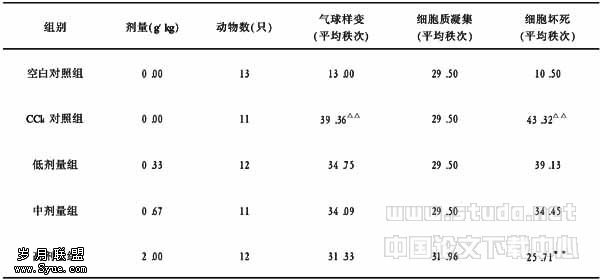 表2 灵芝孢子油对受试动物肝脏病理变化得分 (分)