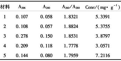 1.2.2 DNA的质量检测 用0.8%琼脂糖凝胶电泳,EB(溴化乙啶)染色,进行DNA质量检测,电泳缓解液为1×TAE,电压为80V,电泳1~2h,然后在紫外凝胶成像系统下观察摄像。
