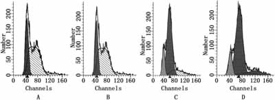 1.8 细胞凋亡的检测和细胞周期的测定 细胞收集同前,用PBS洗3次,加入 PI染色液染色30min(避光、室温)。上机检测,Cellquest软件低速获取。用Modfit2.0软件分析。