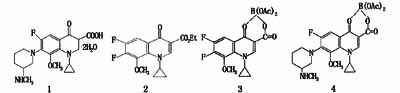 1-螯合物Ⅰ;2-羧酸乙酯;3-螯合物Ⅱ;4-巴洛沙星