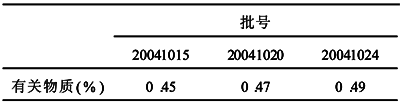 Tab.3 Test result of determine related substances in three sample