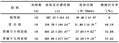 Table 2 Effect of Weitongning on acetic acid causing rat twisting body reaction (x±s)