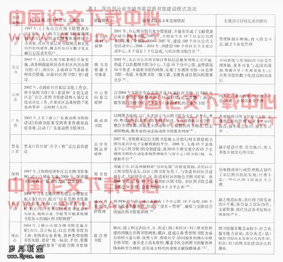 内地部分省市因地制宜,建立了行之有效的基层图书馆发展模式(见表1)。